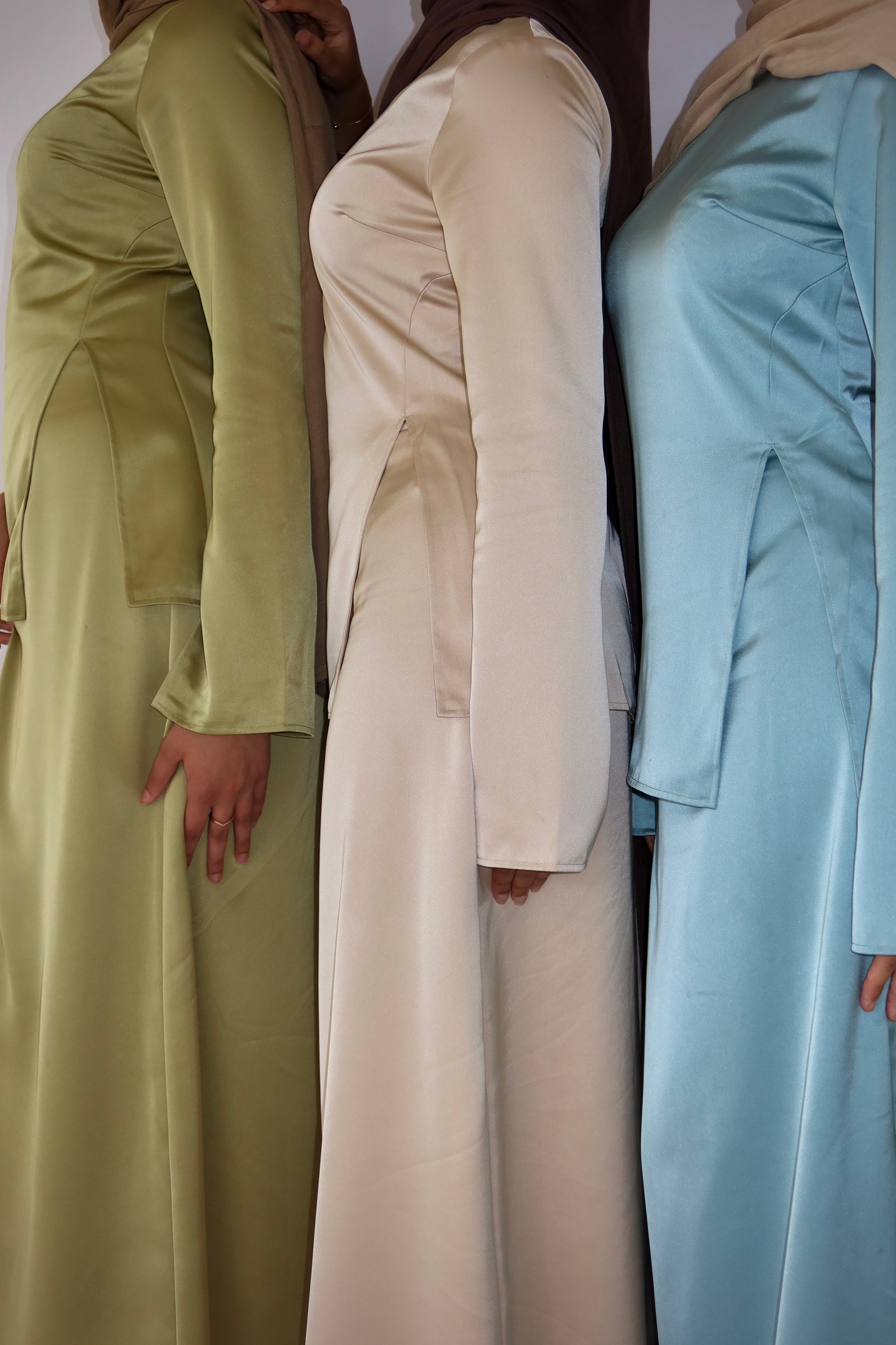 Crafted from a silky satin finish, this set offers a perfect blend of structure and fluidity. The tailored top features a sleek side slit and statement flared sleeves, creating a modern yet graceful silhouette. Whether for an evening soirée or a daytime event, the Alaia Set is your go-to for timeless style.
